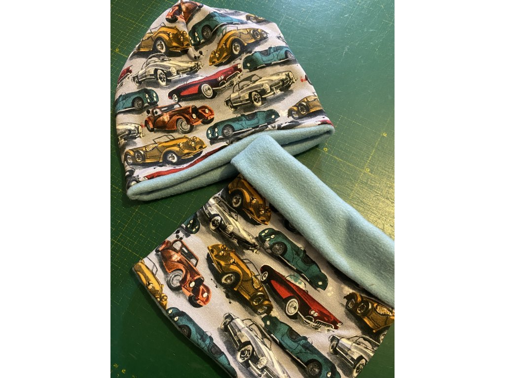 Zimní sety čepice a nákrčník se vzorem krtečka jsou vzor - teplákovina a rub hřejivý flecee