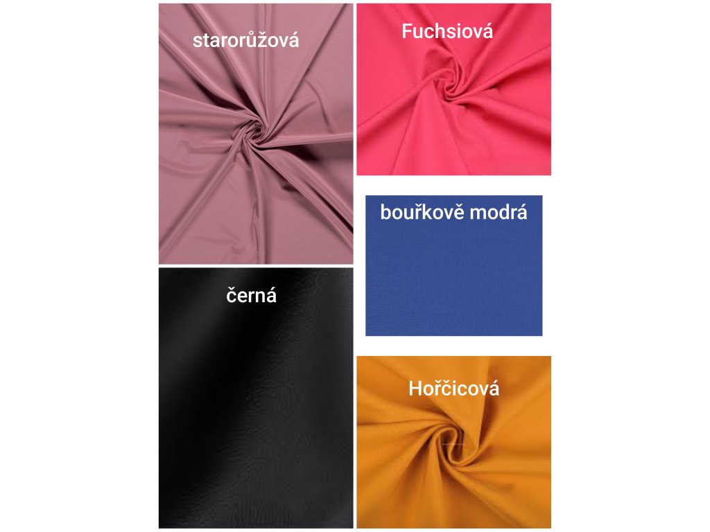 Jasně modrá, tmavě zelená, malinová, žlutá