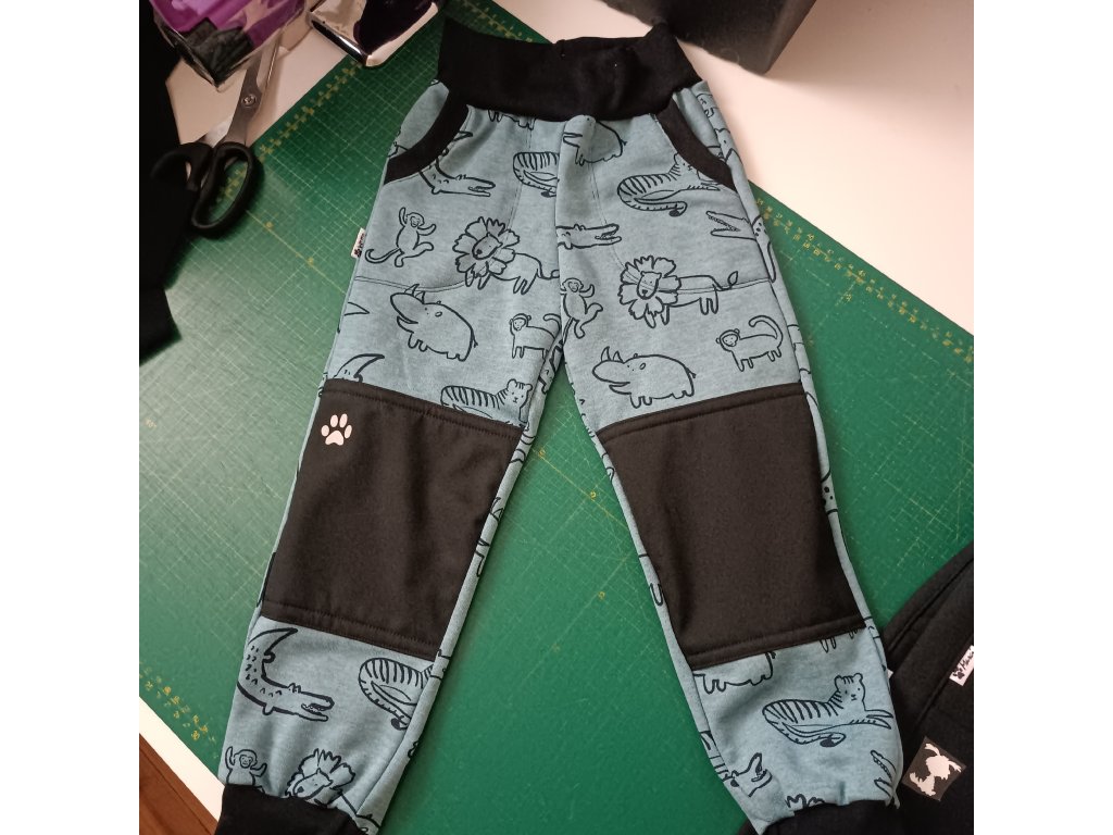 Zvířátka na modré - POČES teplákovina - tepláky KOLENA